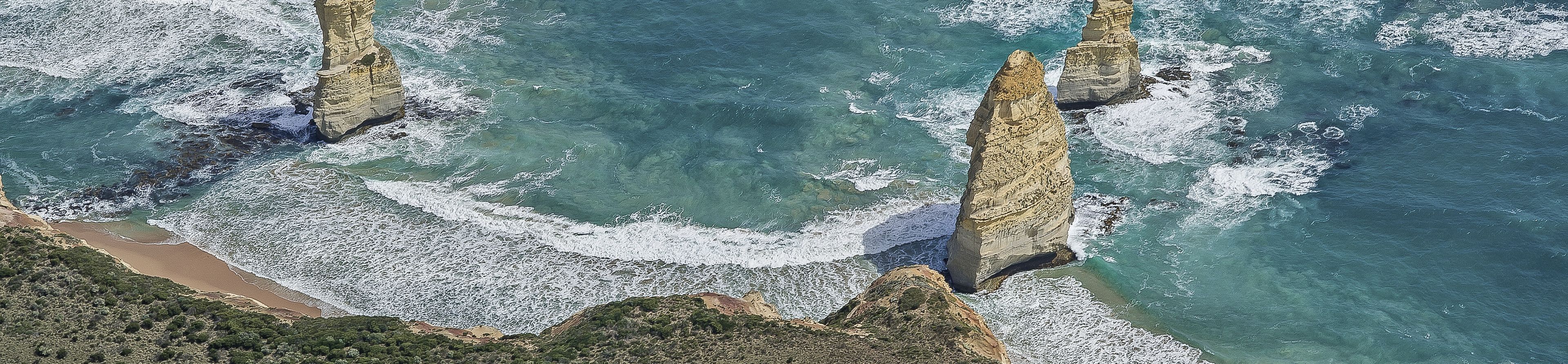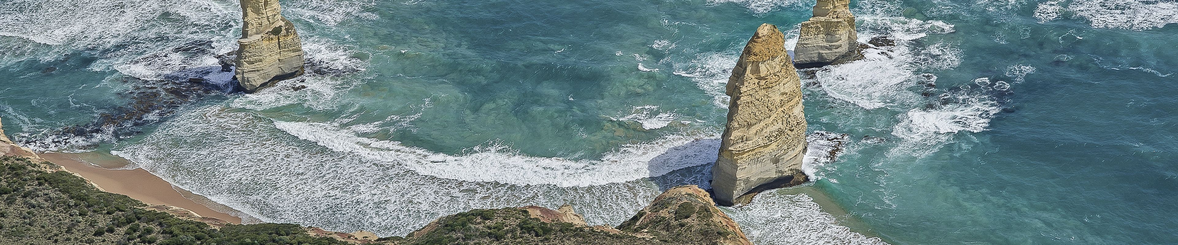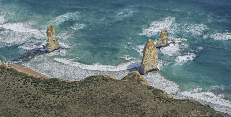 Die Great Ocean Road ist eine der schönsten Küstenstrassen der Welt und bietet 300 km prächtigste Landschafts-Szenerien. Sie beginnt in Torquay, wo mit dem Bells Beach einer der berühmtesten Surfstrände Australiens liegt. Entlang stiller Buchten und bezaubernder Küstenorte wie Aireys Inlet und Apollo Bay führt sie zum Great Otway National Park, einem Regenwald mit Baumfarnen, Wasserfällen und Wanderwegen. Am Cape Otway dösen Koalas gut sichtbar in den Bäumen. Westlich davon folgt die Shipwreck Coast mit ihrem wilden, atemberaubenden Panorama sowie den dramatischen Felsskulpturen wie «Twelve Apostles» und «Loch Ard Gorge» im Port Campbell National Park. Der anschliessende Bay of Islands Coastal Park bietet weitere fantastische Fotomotive wie etwa die Überreste der "London Bridge". Am westlichen Ende der Great Ocean Road liegt Warrnambool. Mit dem Great Ocean Walk lässt sich die die Strecke von Apollo Bay bis zu den Twelve Apostles auch erwandern.