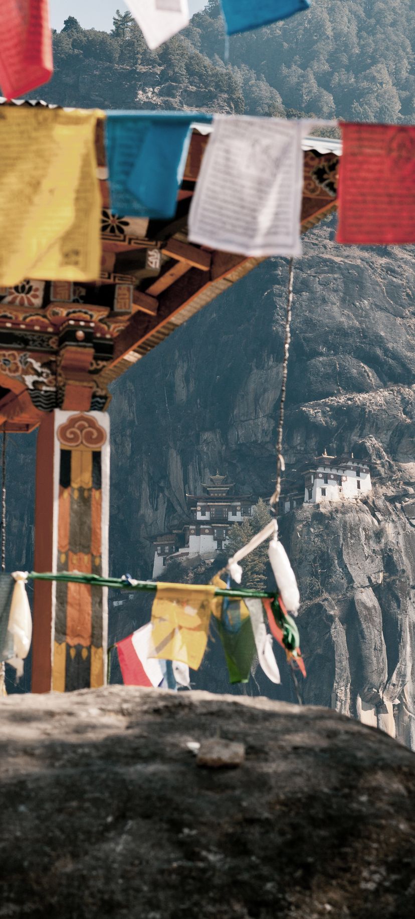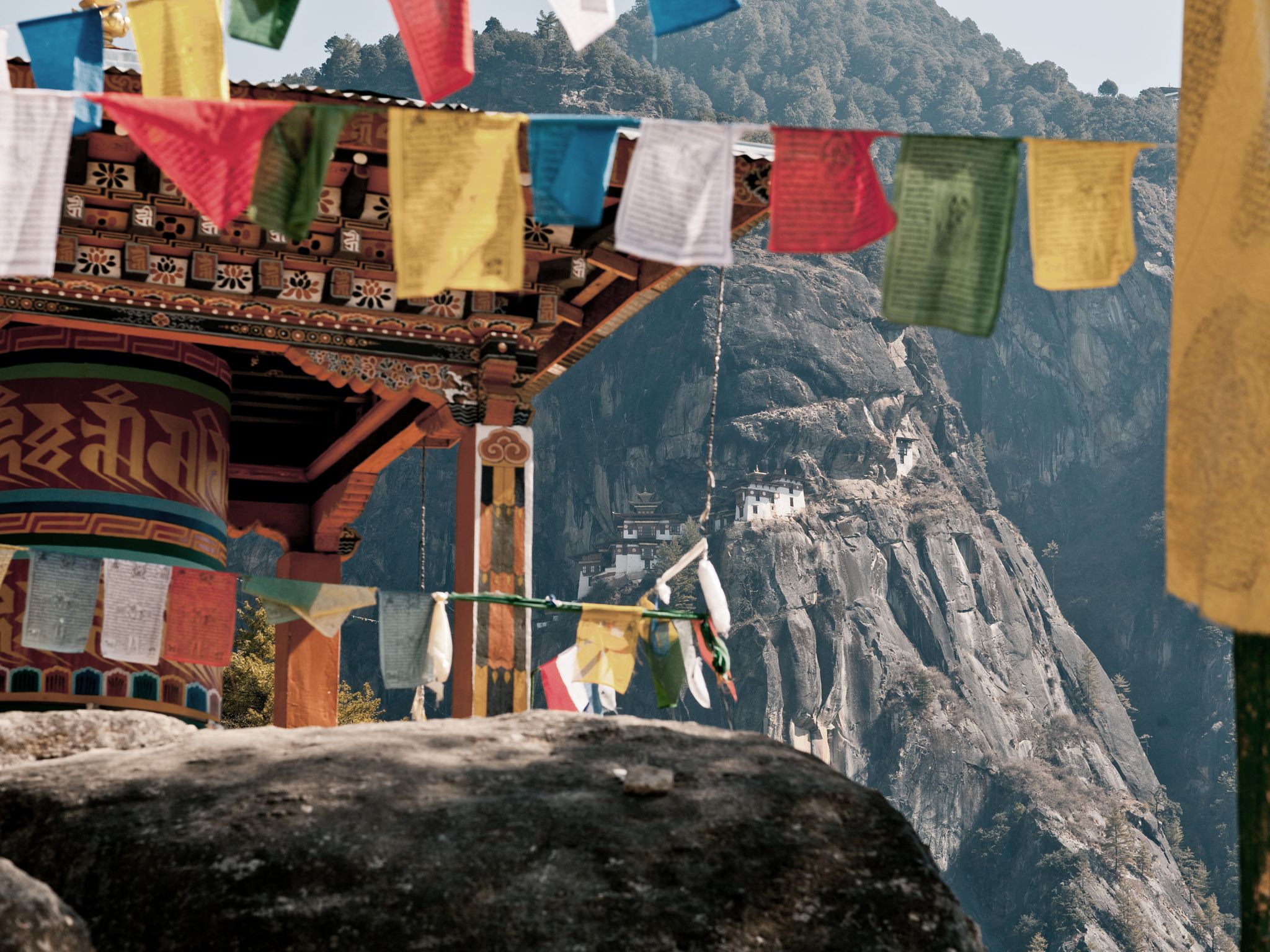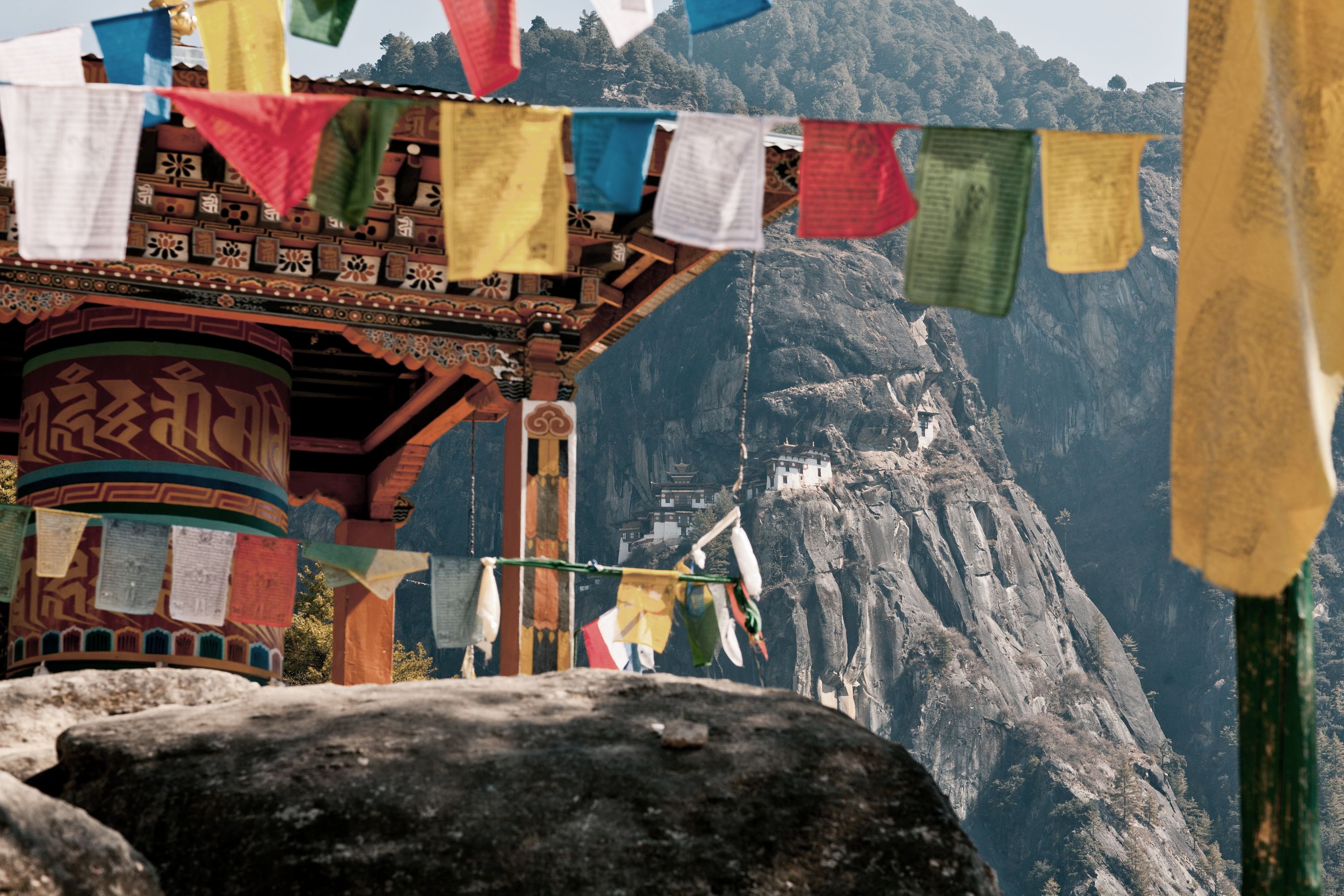 Auf der geschäftigen Hauptstrasse erkunden wir lokale Handwerkskunst, von traditionell hergestelltem Papier bis zu handgewebten Stoffen. Am Wochenende öffnen der Handwerkerbasar und der Gemüsemarkt, wo sich die Farben der Waren mit den Aromen von Gewürzen und frischem Gemüse vermischen. Am nächsten Tag wandern wir zum Kloster Cheri Goemba, das inmitten dichter Wälder liegt. Der Weg führt durch Kiefern und Rhododendren und bietet immer wieder Ausblicke auf das darunterliegende Tal.