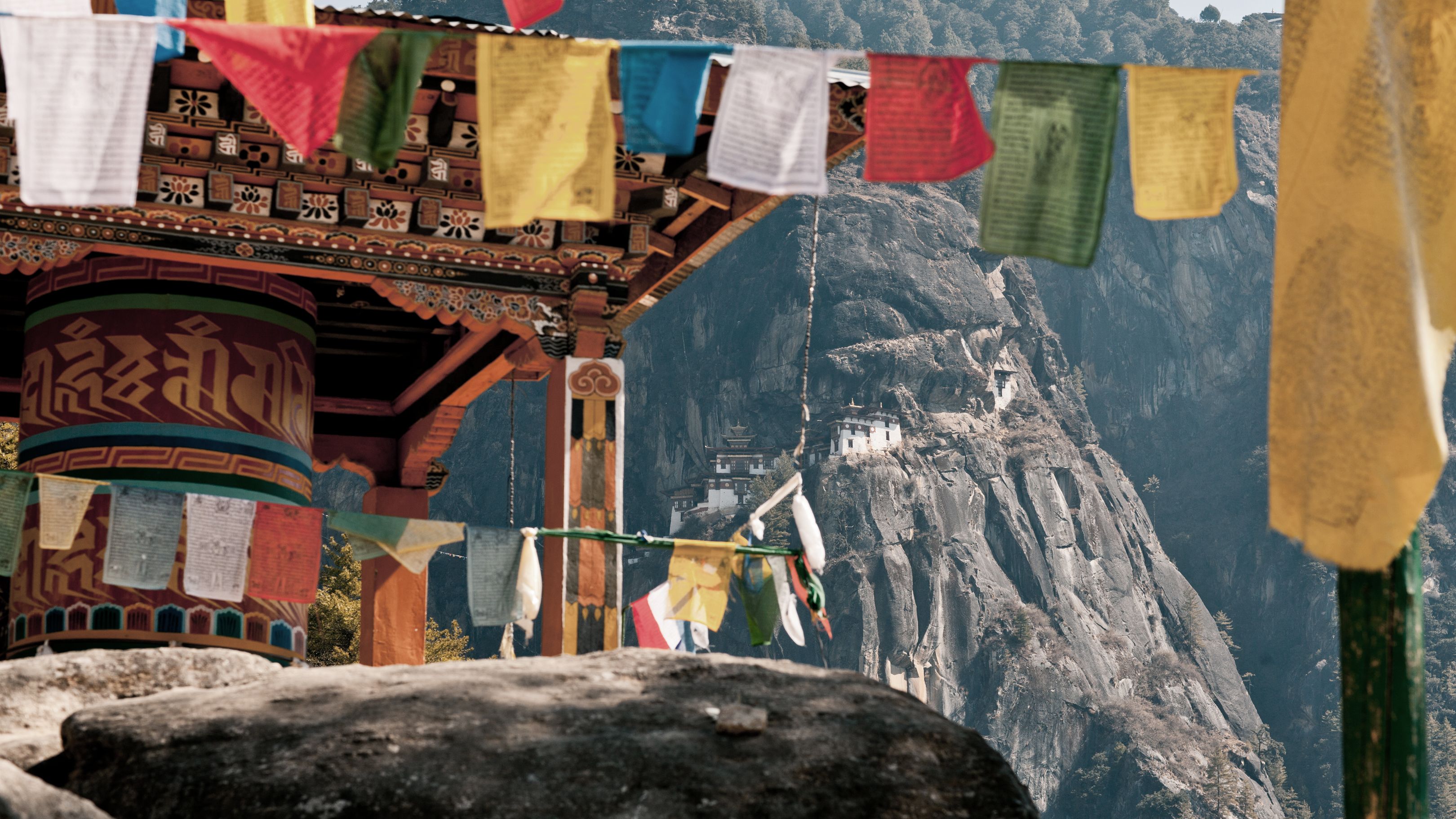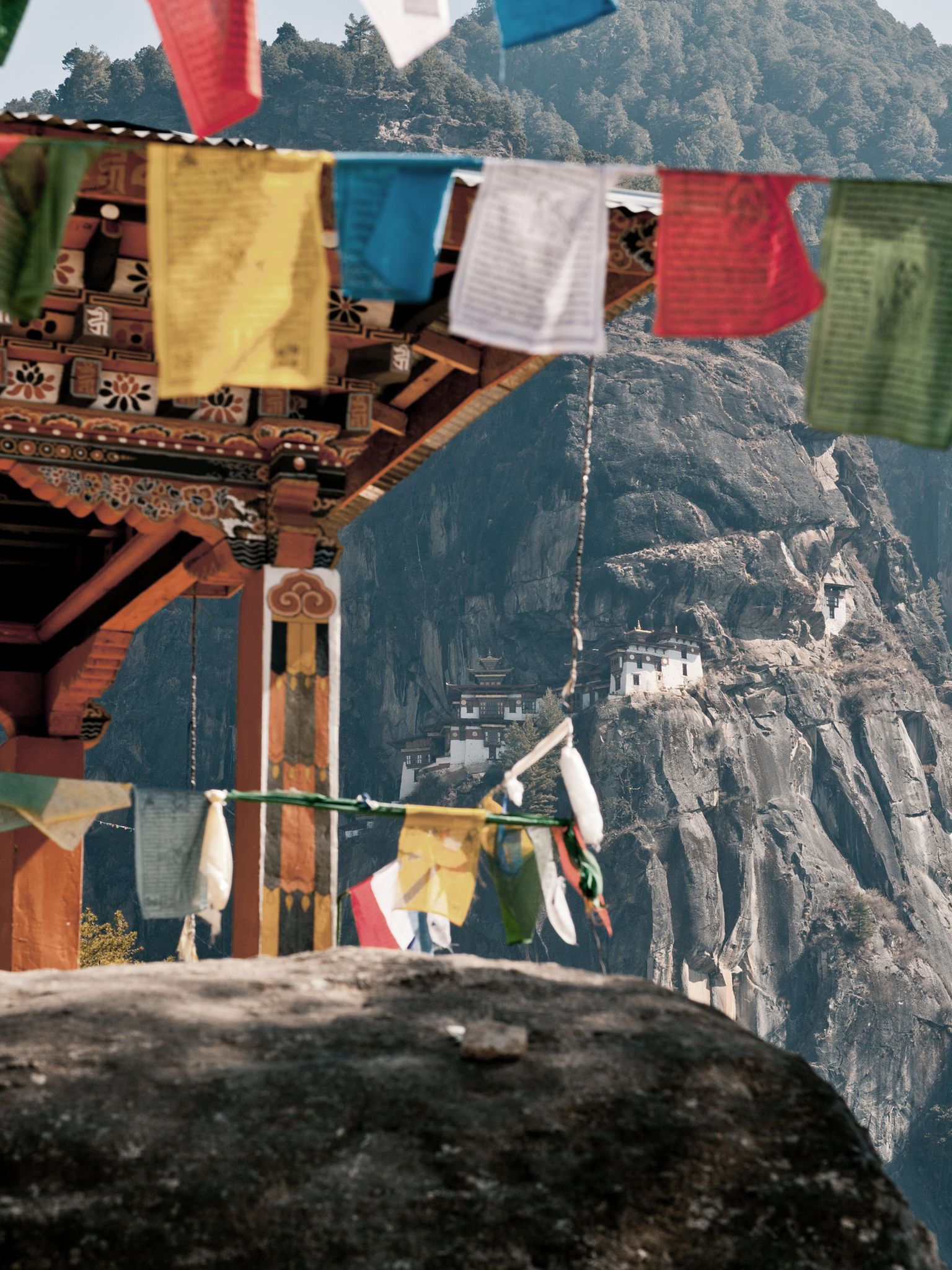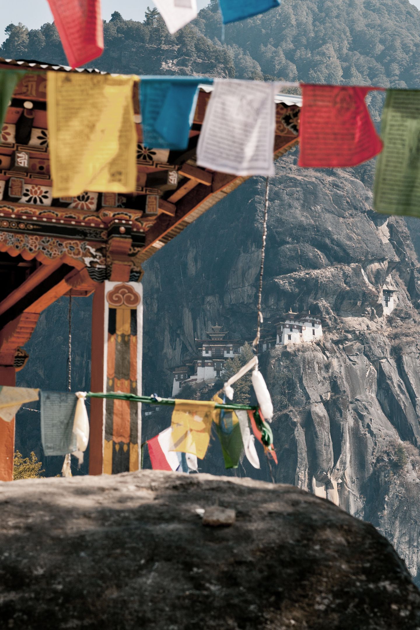 Auf der geschäftigen Hauptstrasse erkunden wir lokale Handwerkskunst, von traditionell hergestelltem Papier bis zu handgewebten Stoffen. Am Wochenende öffnen der Handwerkerbasar und der Gemüsemarkt, wo sich die Farben der Waren mit den Aromen von Gewürzen und frischem Gemüse vermischen. Am nächsten Tag wandern wir zum Kloster Cheri Goemba, das inmitten dichter Wälder liegt. Der Weg führt durch Kiefern und Rhododendren und bietet immer wieder Ausblicke auf das darunterliegende Tal.