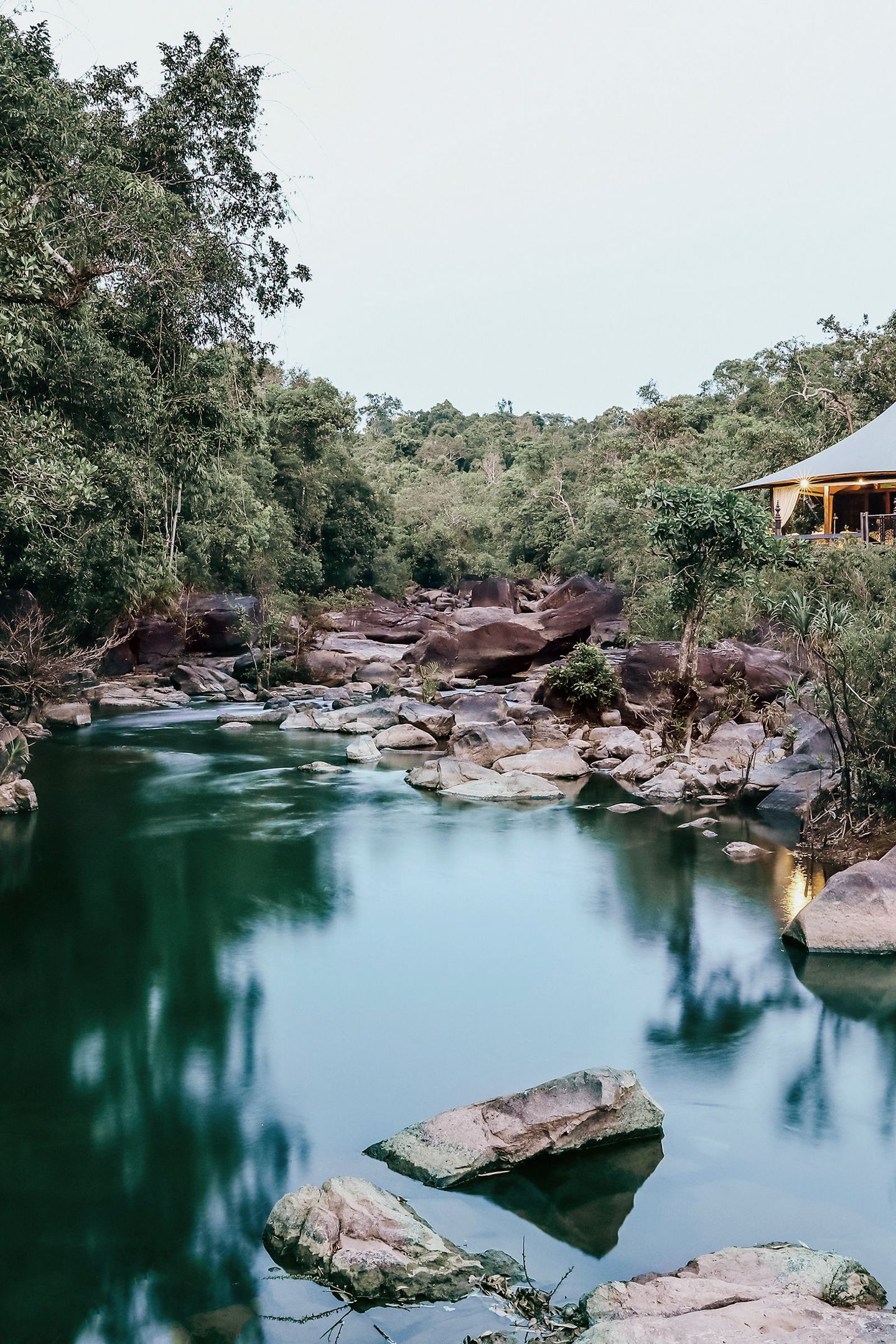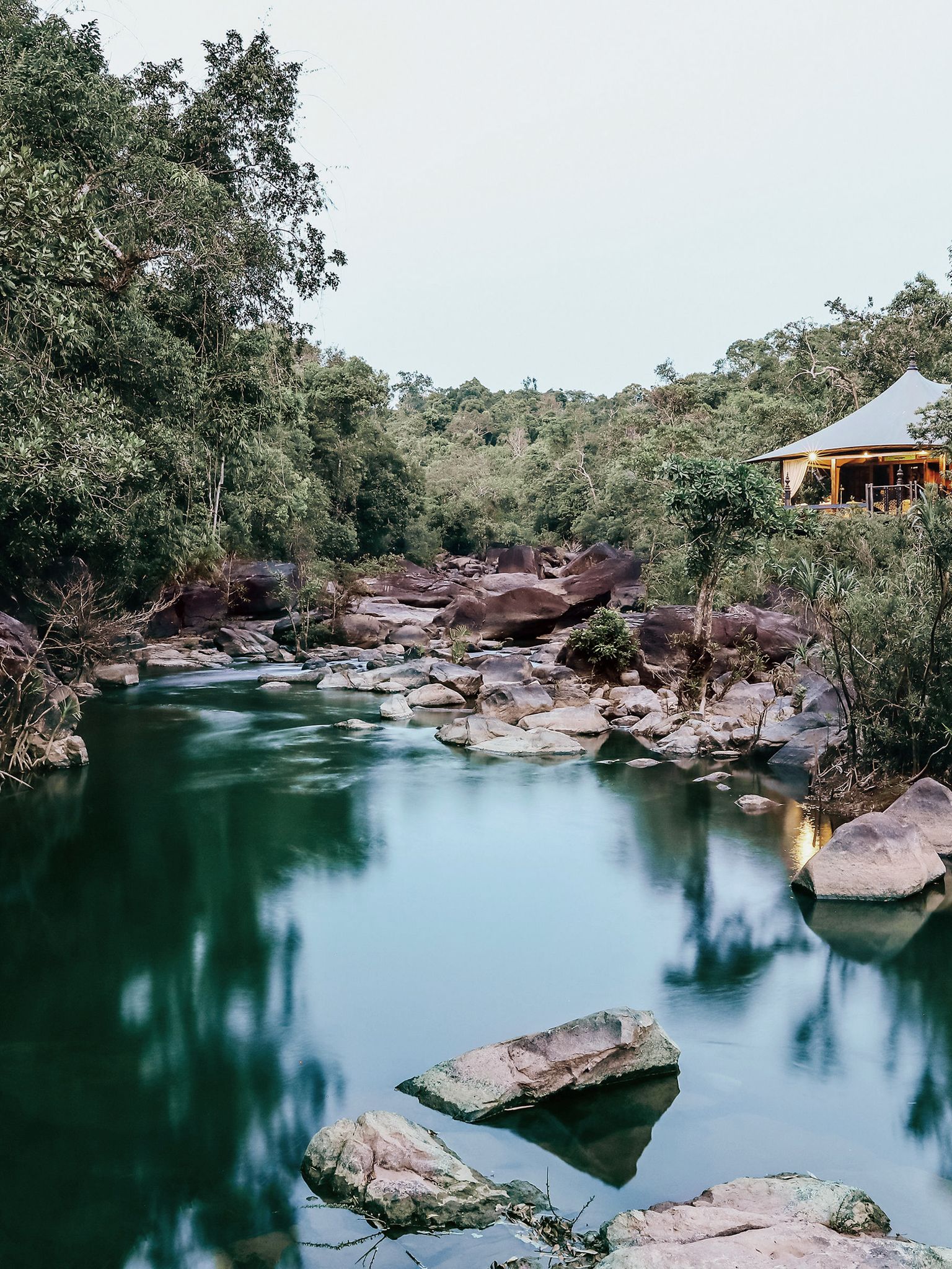 Ein Dschungel-Erlebnis der besonderen Art! Zuerst gilt es, sich im Grossstadt-Dschungel Phnom Penhs zurecht zu finden. Unser Programm führt Sie vorbei an altehrwürdigen Bauten und leitet Sie durch kulinarische Erlebnisse. Erholung und Überblick erhalten Sie von Ihrer ultraluxuriösen Übernachtungsbasis auf 188 m über dem Treiben der Stadt. Der anschliessende zweite Teil der Tour führt in den natürlichen Dschungel von Shinta Mani Wild im Süden des Cardamom-Nationalparks. Die nahezu unberührte Umgebung entlang des Flusses, das künstlerische Design der exquisit gestalteten Khmer-Zelte sowie der fürsorgliche und gleichermassen subtil gehaltene Rundum-Service werden Sie verzaubern wie verblüffen.