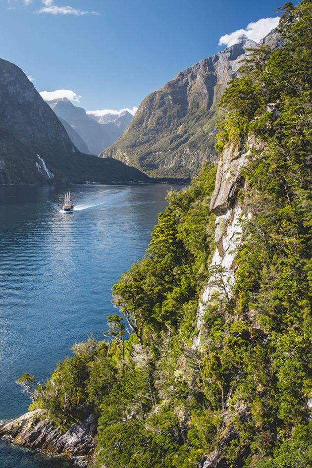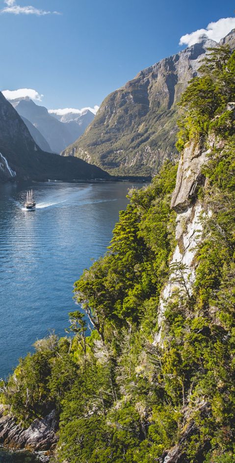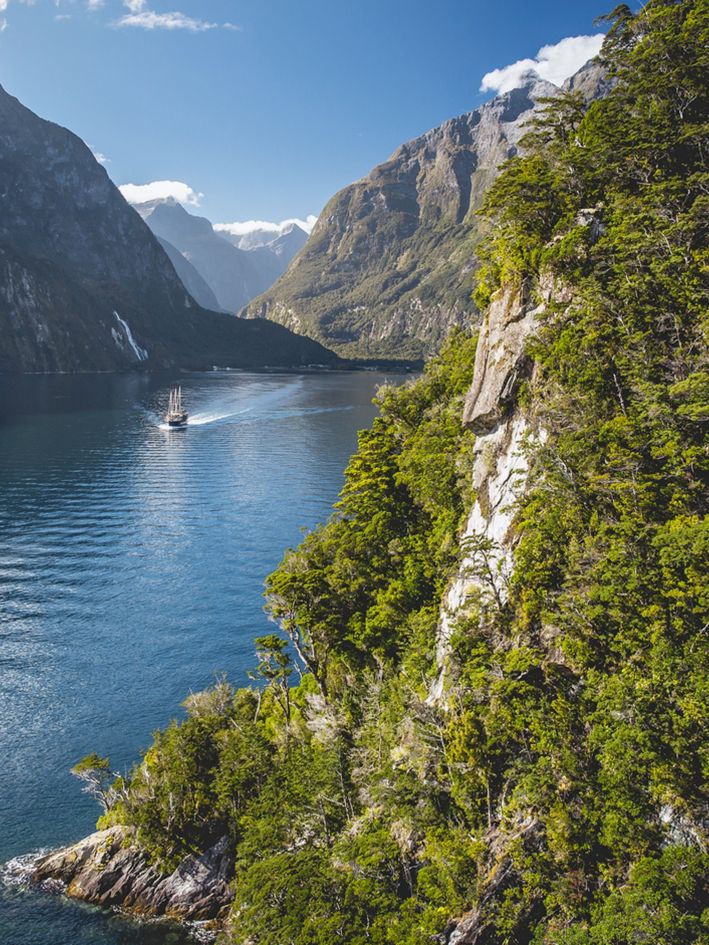Im Herzen des zum UNESCO-Weltnaturerbe gehörenden Fiordland National Parks gelegen, beeindruckt der Milford Sound durch seine wilde Schönheit und die urwüchsige Landschaft mit schroffen Felsen, darunter dem berühmten «Mitre Peak», und üppigem Regenwald. Auch die Anfahrt über die Milford Road ist ein Highlight und bietet fantastische Aussichten.