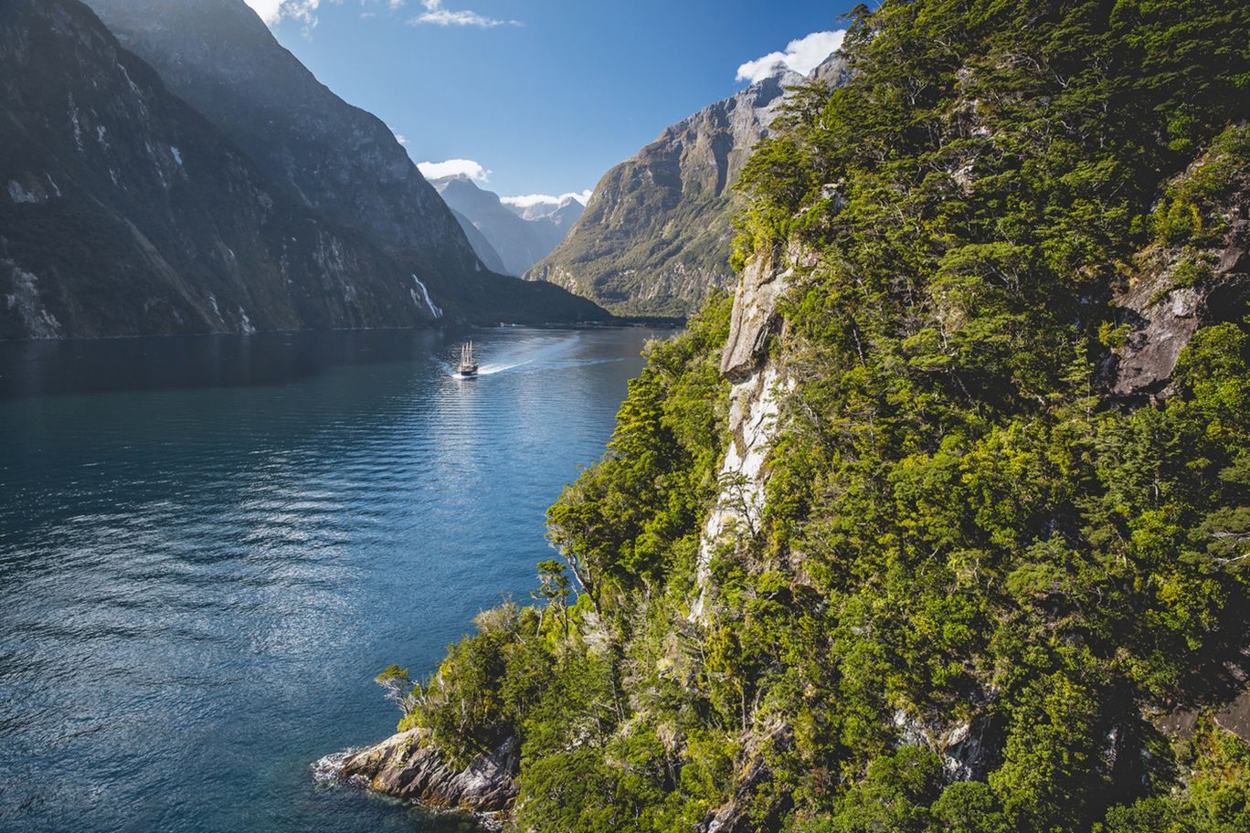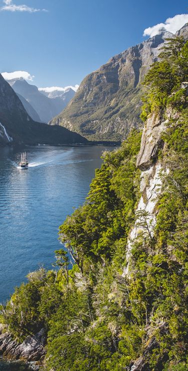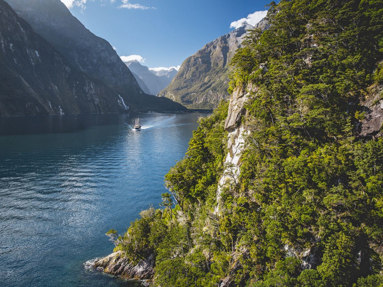 Sobald die Tagesgäste vom Milford Sound abgereist sind, hält die Stille Einzug. Vom Schiff aus geniessen Sie die Natur in dem enormen Meeresarm, der von turmhohen, moosbewachsenen Felswänden eingesäumt wird und halten nach Delfinen, Pinguinen und Seelöwen Ausschau. Die fachkundige Besatzung des Schiffs bringt Ihnen die einzigartige Natur näher, ausserdem bietet sich die Möglichkeit für eine Rundfahrt im Beiboot oder Kajak, um die eindrücklichen Felswände und ihre Flora aus nächster Nähe zu erkunden. Je nach Wetter präsentiert sich der Fjord mystisch nebelverhangen, oder Regenfälle lassen riesige Wasserfälle die Felswände hinunter stürzen. An Bord übernachten Sie in komfortablen Doppelkabinen mit eigenem Bad und geniessen die frisch zubereiteten Mahlzeiten.
