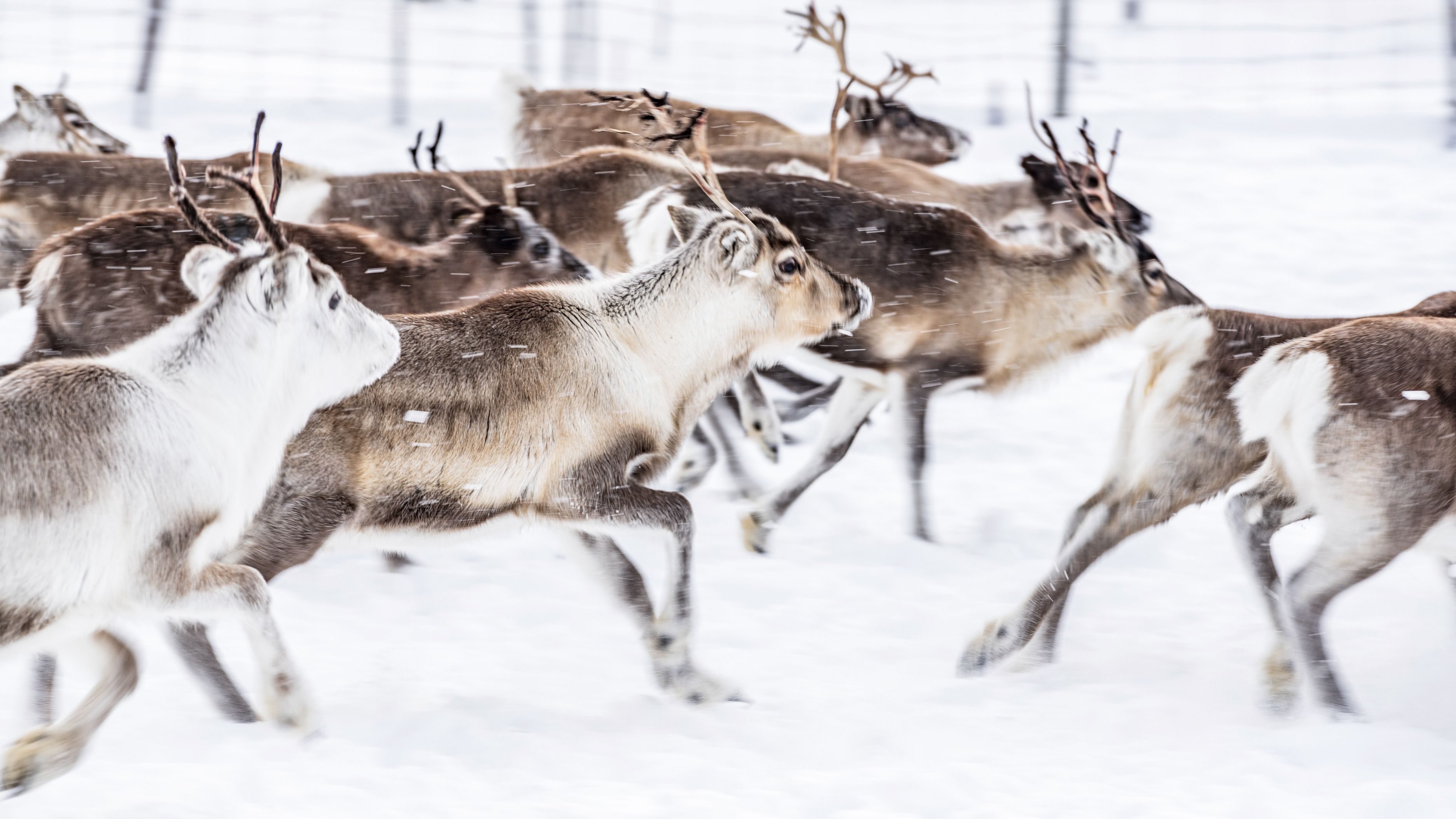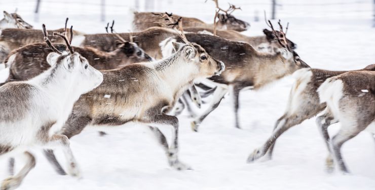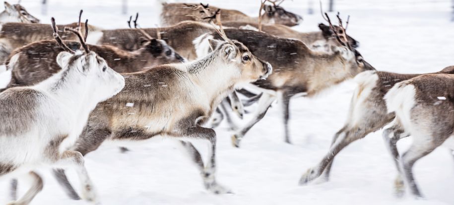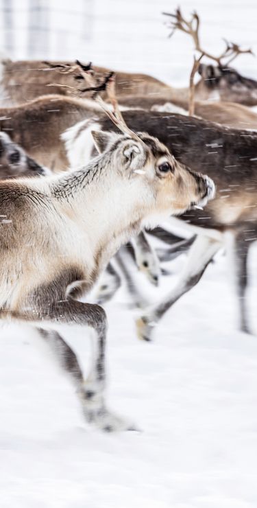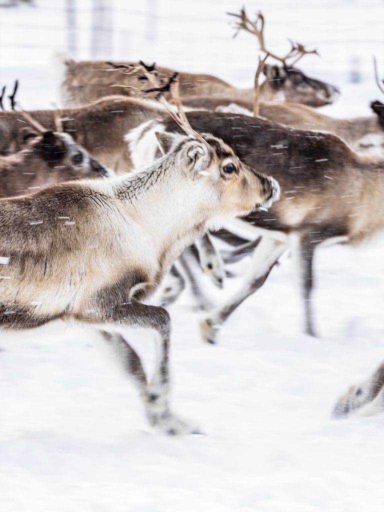 Die Landschaft im Norden von Finnland liegt unter einer dicken Schneeschicht, die Bäume sind zu eisigen Skulpturen erstarrt. Bis auf das Rauschen des Windes ist kaum ein Geräusch zu hören. Plötzlich kommt ein Hecheln näher: Ein Hundeschlittengespann zieht durch die magische Landschaft, die sich auf unzähligen Ausflügen erkunden lässt.