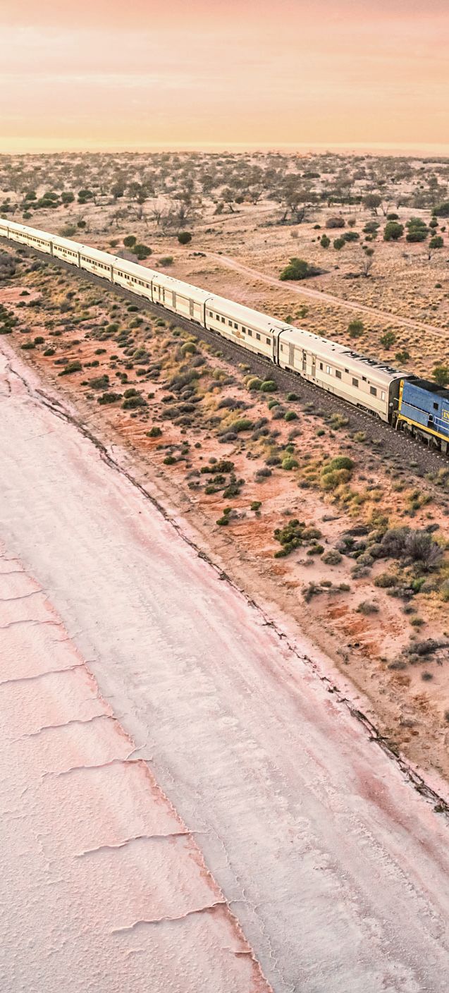 Erleben sie eine einzigartige Zugreise, die auf einer der längsten Bahnstrecken der Welt den Pazifik an der Ostküste Australiens mit dem Indischen Ozean an der Westküste verbindet. Unterwegs erleben Sie die historische Bergbaustadt Broken Hill, Adelaide, die Hauptstadt South Australias, die Weite des Outbacks in der Nullarbor-Ebene und schliesslich das lieblich-grüne Avon Valley östlich von Perth. In der Nullarbor-Ebene befährt der Zug ausserdem die längste gerade Bahnstrecke der Welt! Unterwegs erwarten Sie interessante Ausflüge und Aktivitäten sowie kulinarische Genüsse im eleganten Speisewagen. Sie reisen im luxuriösen Einzel- oder Doppelabteil; ausserdem steht Ihnen ein Lounge-Wagen zur Verfügung, in dem Sie Ihre Mitreisenden treffen.