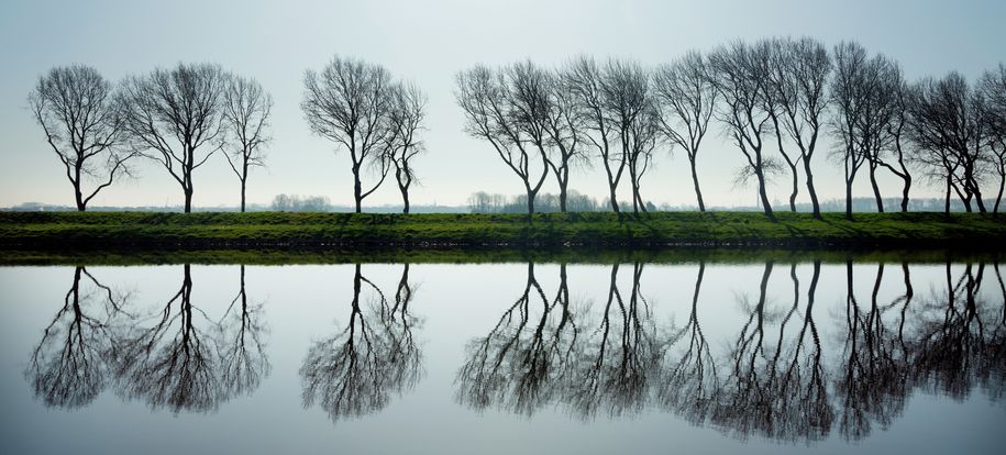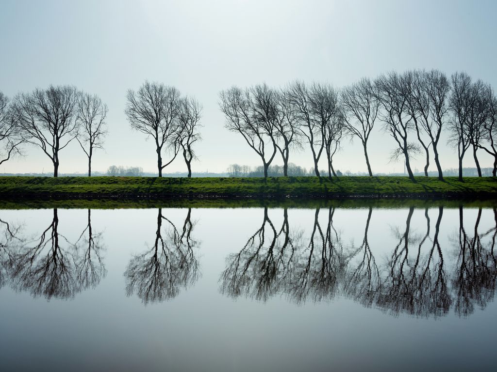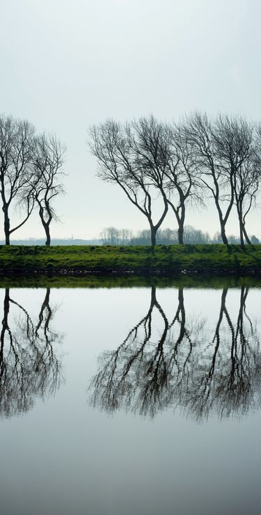 Bäume an einem Kanal bei der Stadt Middelburg, Provinz Zeeland